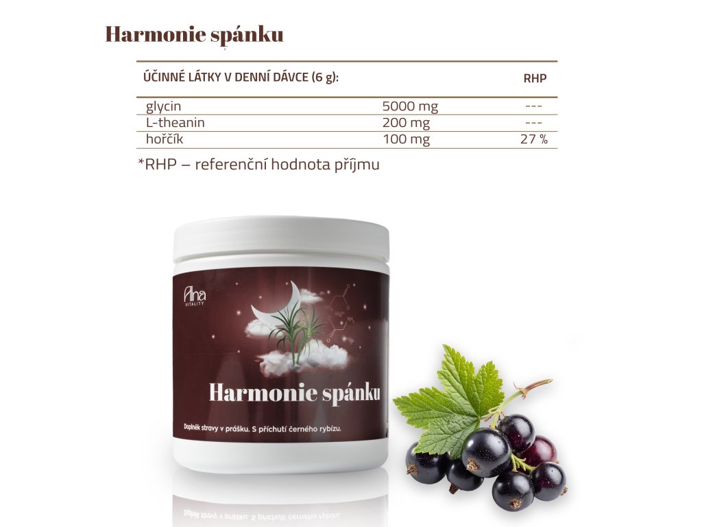 Jsme rádi, že Vám Harmonie spánku pomáhá k hlubokému a kvalitnímu spánku. Tento produkt jsme vyvinuli tak, aby nejen podpořil snadné usínání a regeneraci během noci, ale při pravidelném užívání mohl přispět i ke zlepšení paměti a soustředění.