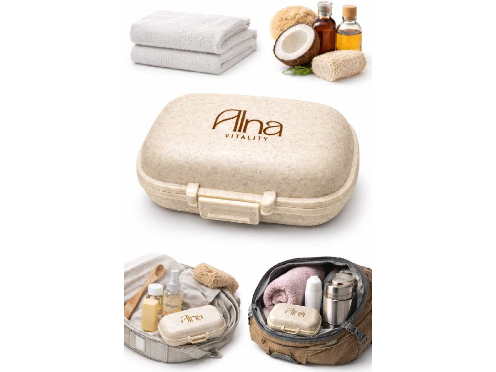 Každá přihrádka má vlastní uzavírání, takže kapsle zůstávají přehledně oddělené podle dávky nebo denního režimu. Díky pevnému pantu a bezpečnostnímu zavírání se zásobník samovolně neotevře ani při přenášení v kabelce, tašce nebo batohu.